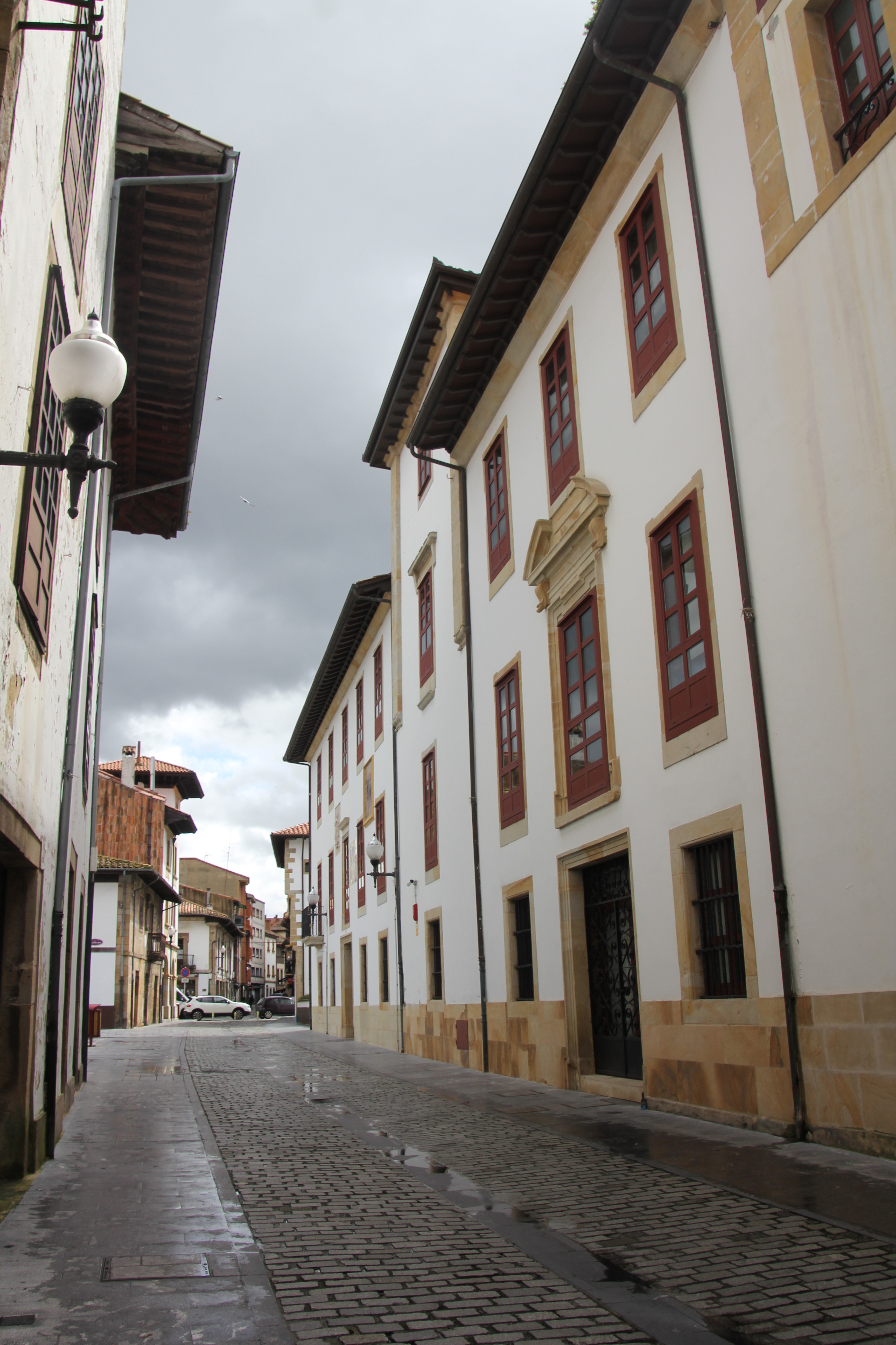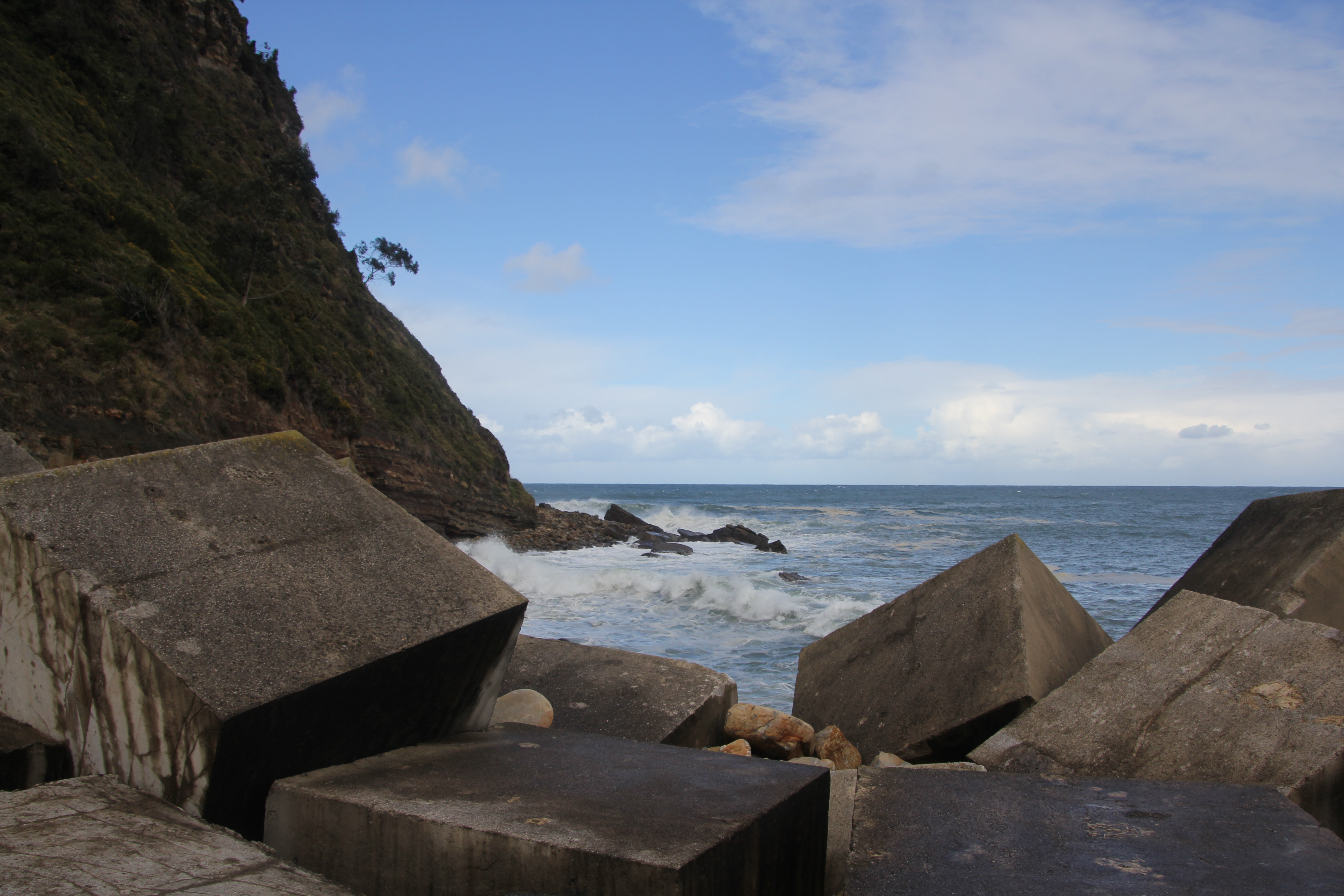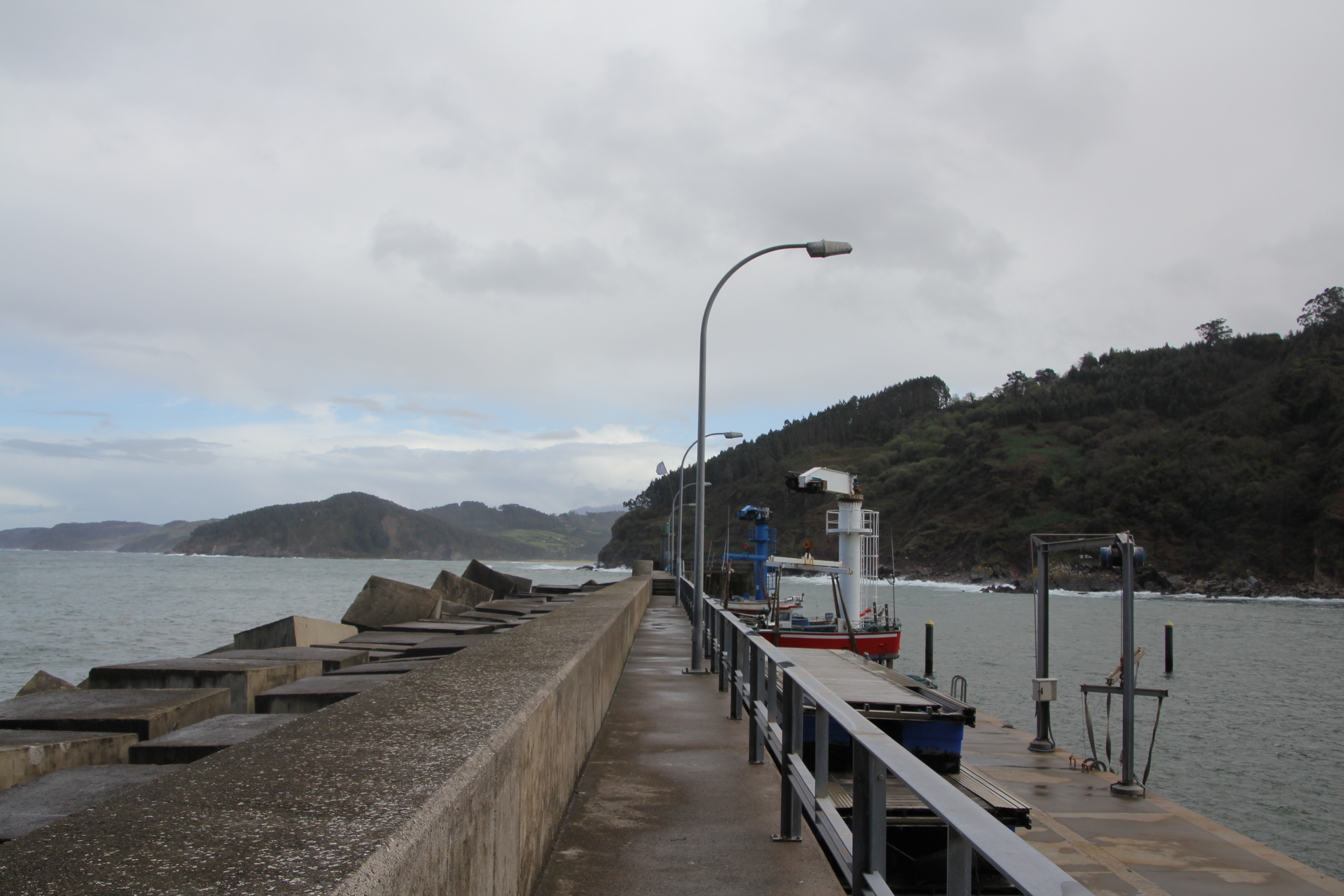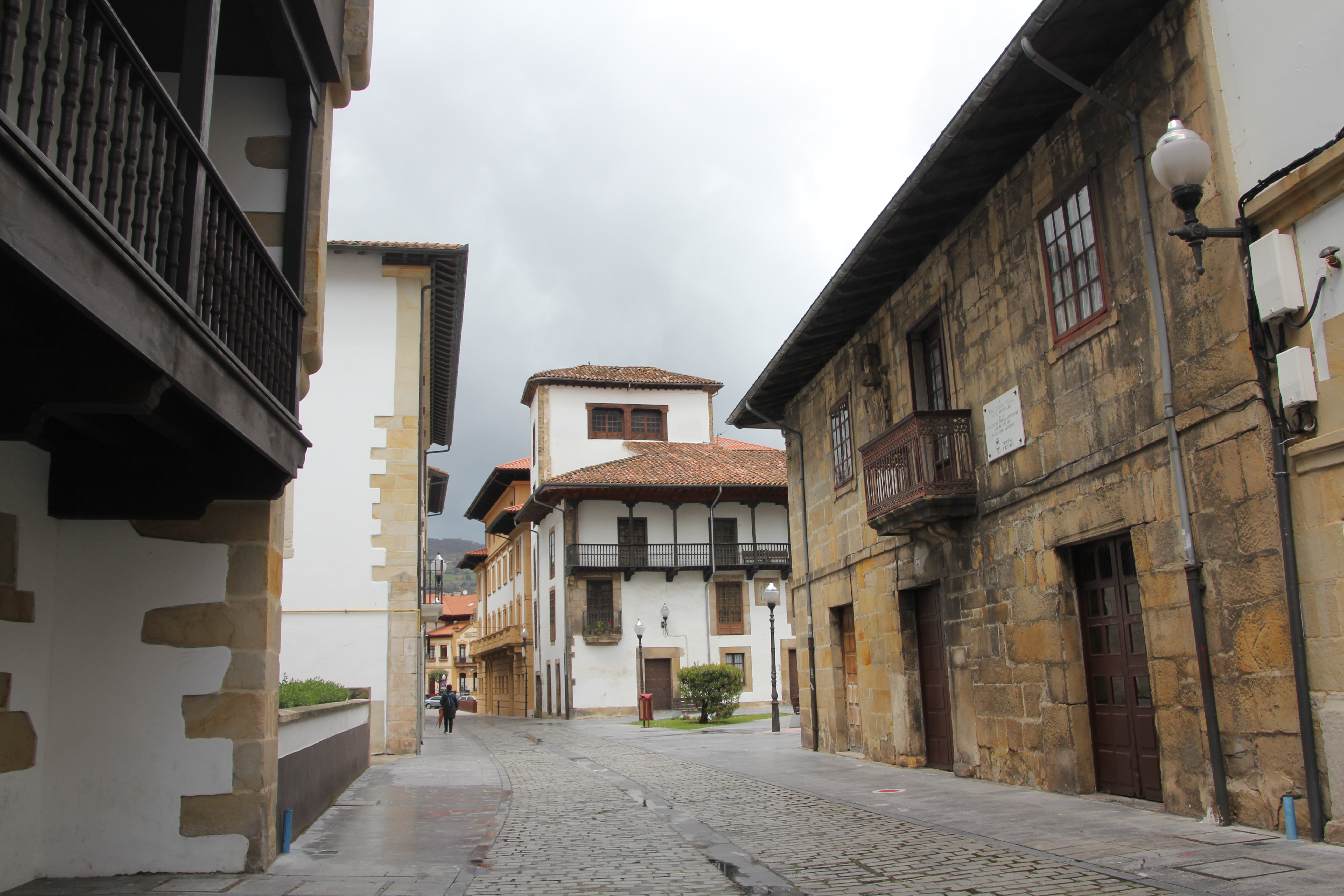 Arrivés à Tazones par une route sineuse, nous nous sommes garés le long de la jetée. Il y avait des vagues si hautes que notre voiture a été nettoyée à plusieurs reprises ;). Ici le village est une impasse, pour repartir, il faut faire demi-tour. La ville n’est pas très accessible, cela a été compliqué. De grosses pierres, des montées et des escaliers… et la pluie. Des personnes nous ont aidé à redescendre. La jetée d’où sont prises les photos de l’océan n’est pas accessible (plusieurs marches).