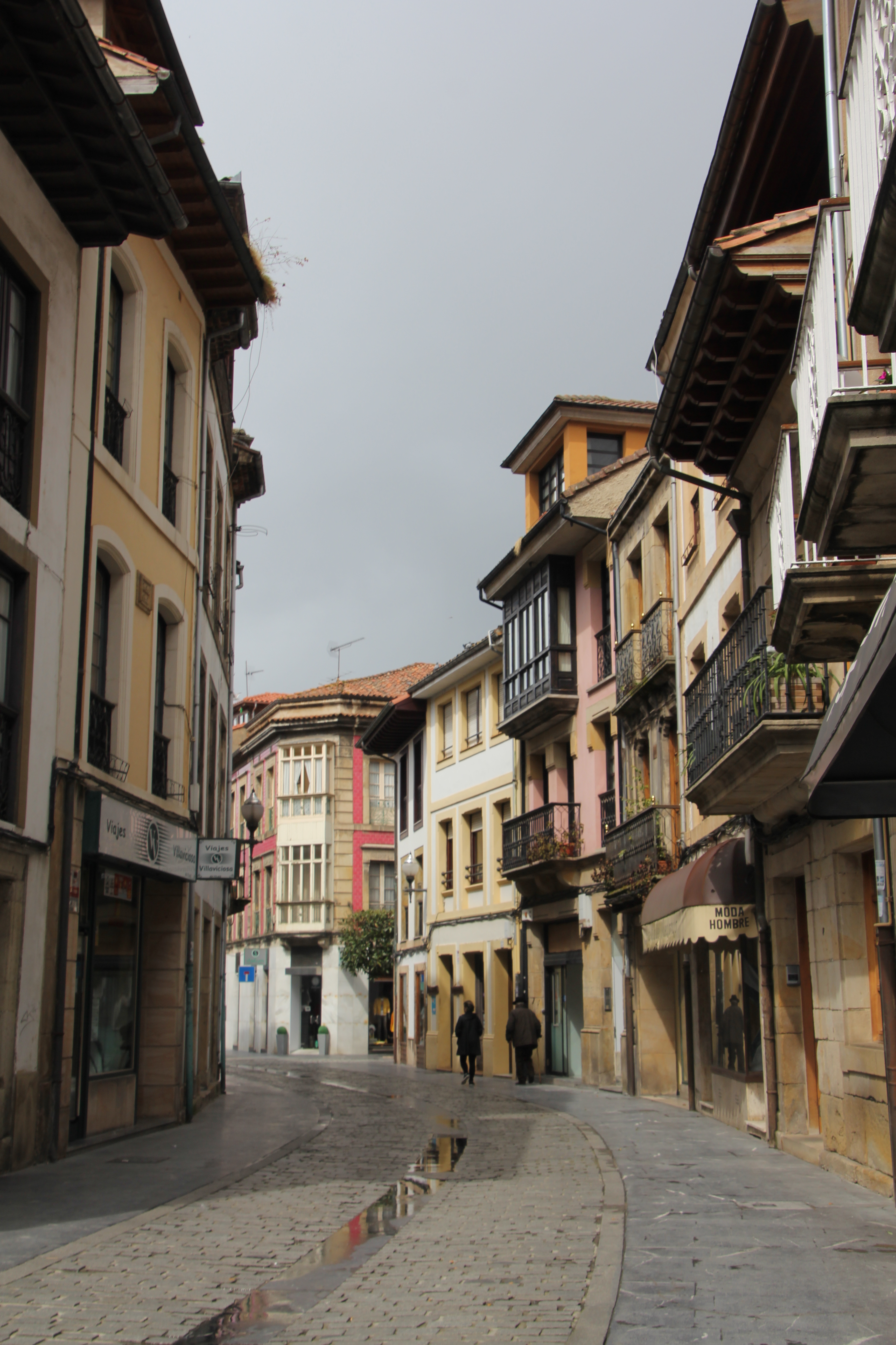 En tout cas, arrêtez-vous dans une des sidreria dans cette rue, vous ne serez pas déçus! Et surtout, ne vous servez pas vous même, attendez qu’un serveur vienne le faire. (Elisa a essayé de nous servir… et a eu le droit à un regard noir!). En effet, il faut être formé au service du cidre. Le serveur tient la bouteille bras droit tendu au dessus de sa tête sans la regarder. Il tient le verre avec sa main gauche à hauteur de cuisse, au dessus d’une sorte de cuve. Il fait ensuite doucement basculer son poignet pour que le cidre tombe dans le verre. Il ne sert que le fond du verre. Il n’est possible de boire que 2-3 gorgées. Car oui, il ne faut pas finir son verre, mais le vider par terre. Il y a des caniveaux au sol. ((On vous invite à regarder sur internet des vidéos de service du cidre asturien, ou encore mieux, d’aller le voir de vos propres yeux!!)). Comme l’impression de ne boire que la moitié de la bouteille… il faut jeter aussi le fond de la bouteille!