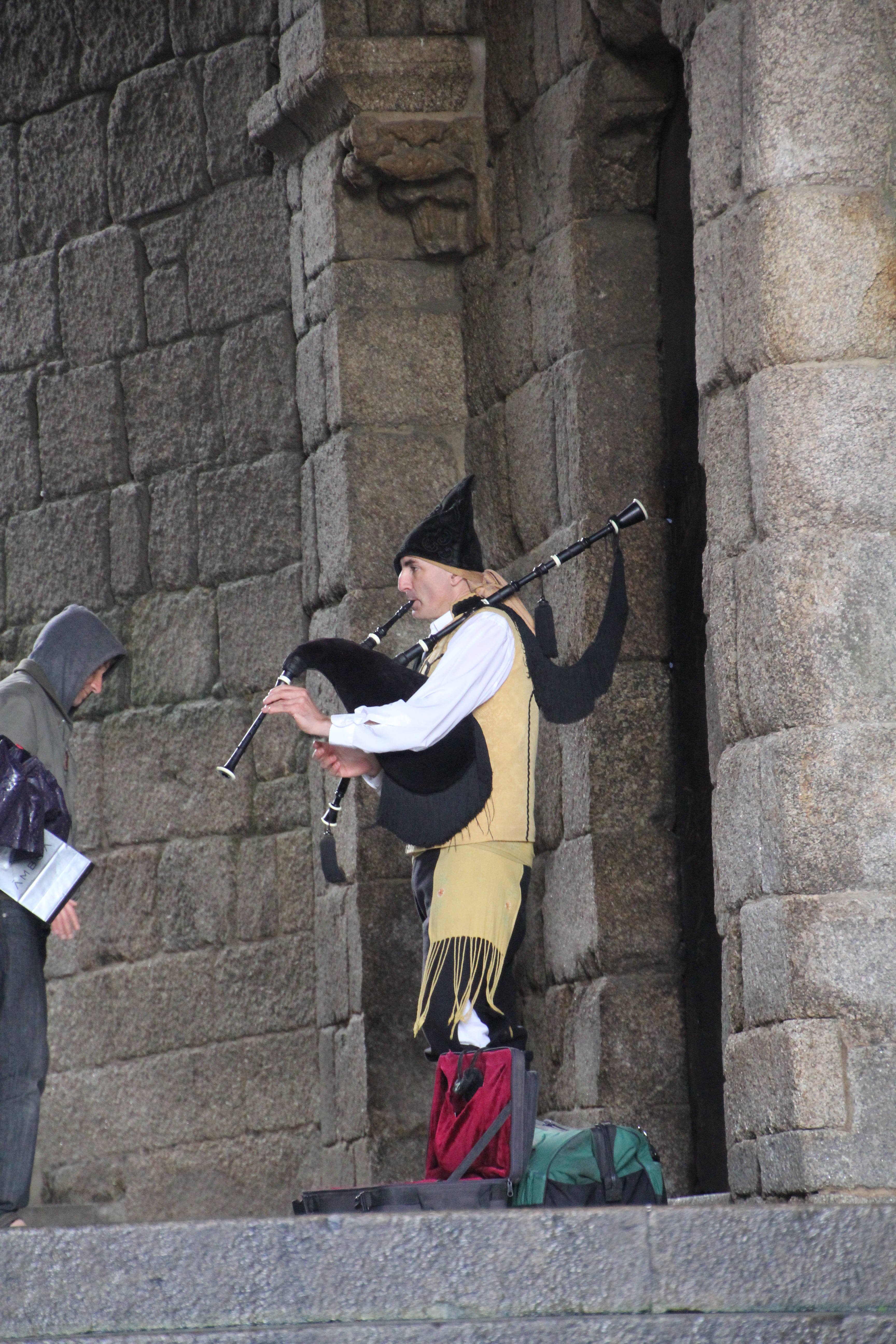 Ha le joueur de cornemuse, toujours au poste alors !! Il était là quand je suis arrivée à St Jacques avec les genoux en feu, sa musique ajoute à l’émotion de l’arrivée, sacré souvenir !! Merci pour le voyage Espagne/Portugal en lecture, je me régale à lire vos aventures ! Bisous