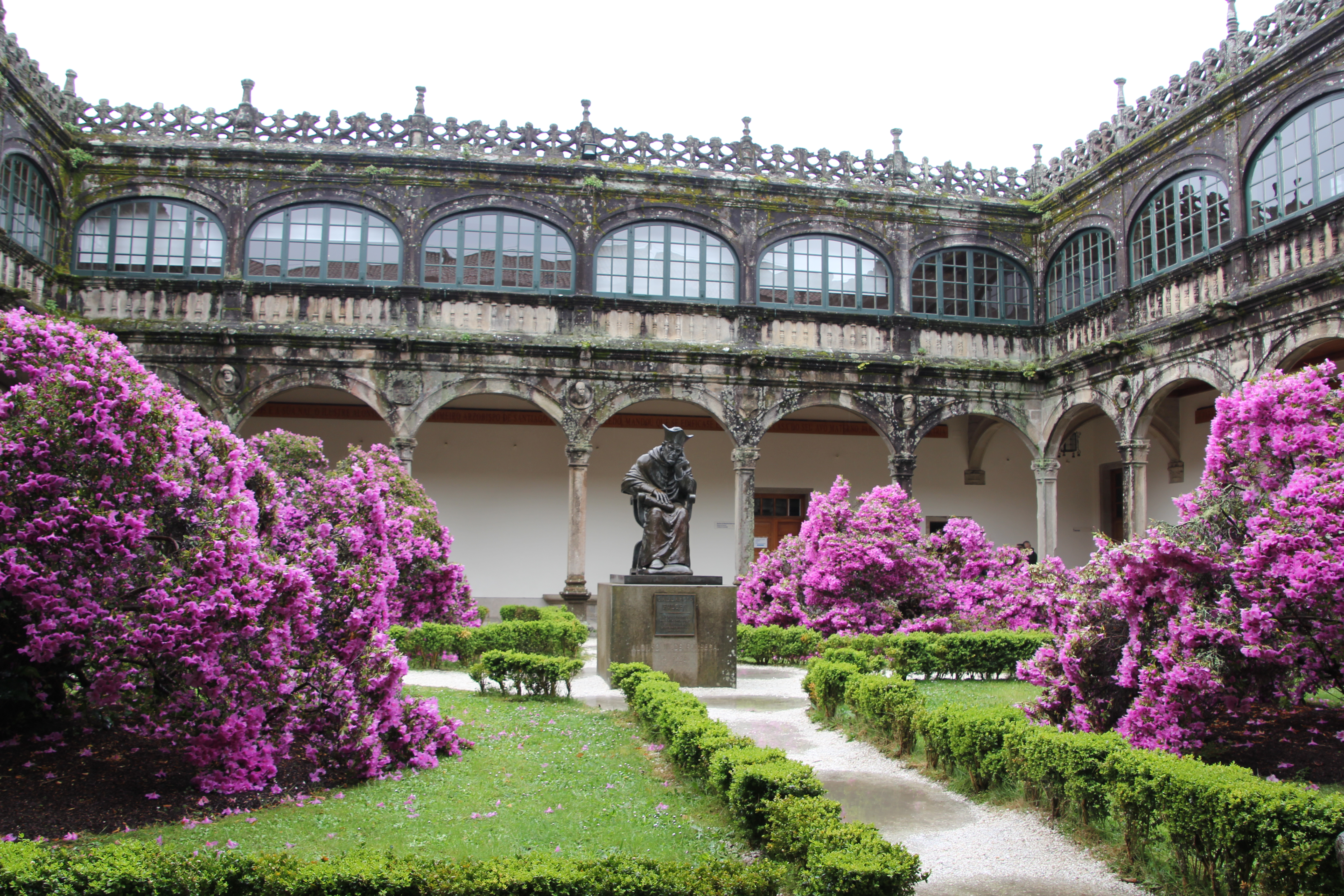 De retour en direction de la voiture, nous nous passons devant l’université de St Jacques de Compostelle… et cela valait le coup d’œil. L’entrée est accessible et nous avons pu faire le tour de la cour intérieure.