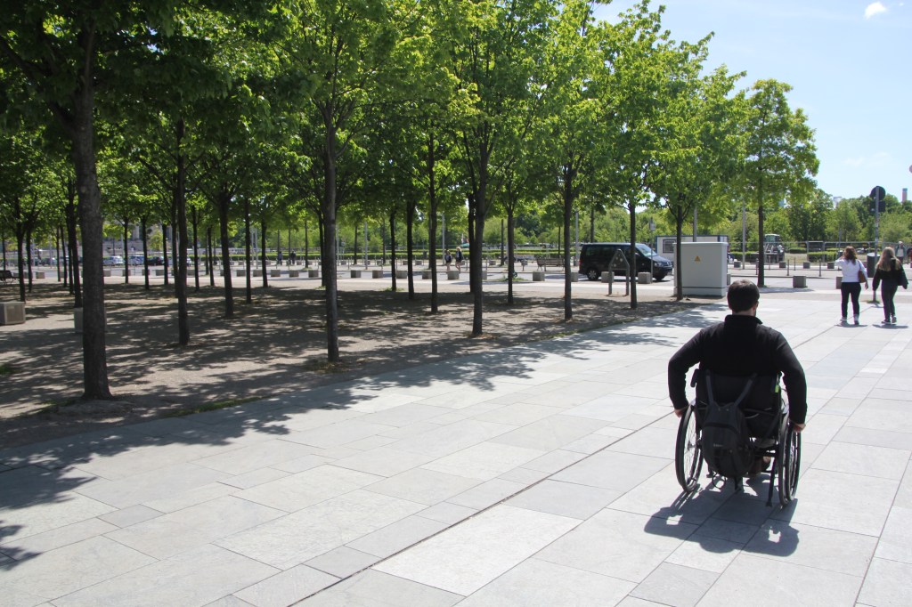 Nous n’avons eu aucune difficulté pour se balader. Les allemands respectent les passages piétons, et il ne faut traverser que lorsque le piéton est vert! La très très grande majorité des trottoirs sont abaissés, donc aucun souci pour passer. Seules les bouches d’égouts dépassent parfois de la chaussée, à faire attention!