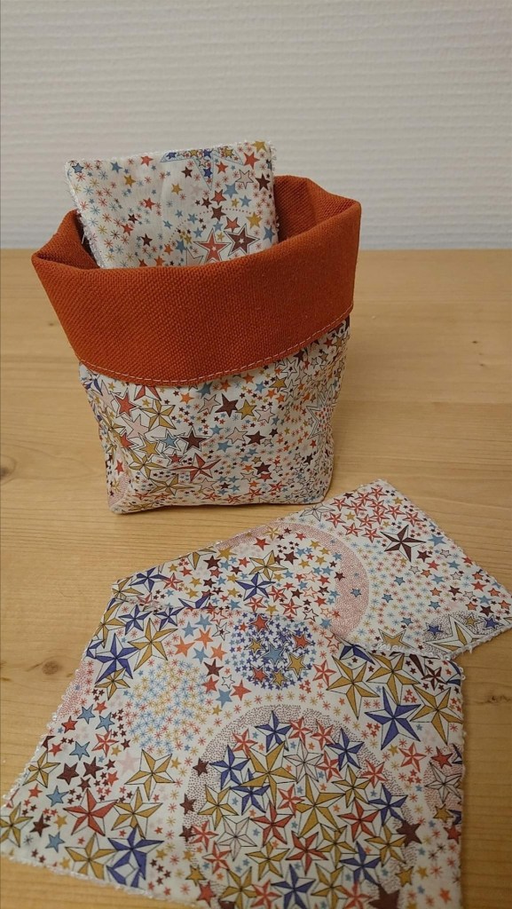 • Les cotons ont été remplacés par des lingettes démaquillantes cousus main par Elisa avec L’Atelier des Gourdes, lavables et super beaux. Simple à coudre, efficaces et écolo.