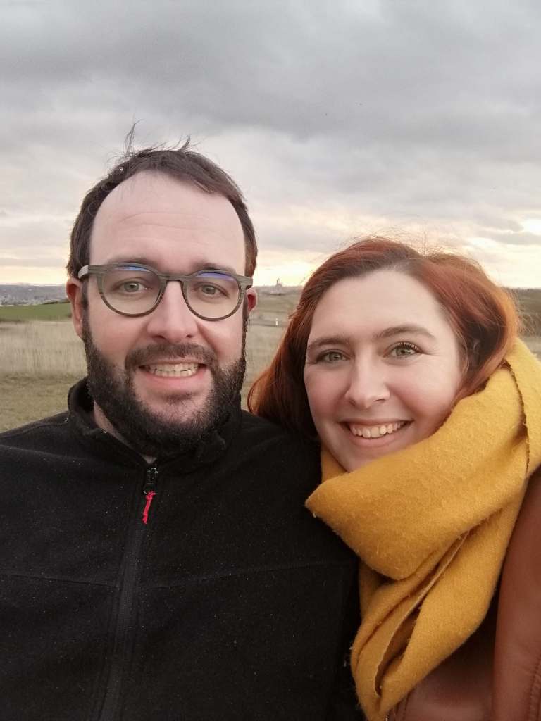 Désolé, il n’y aura donc pas de photos/vidéo de demande en mariage, mais plutôt une belle image de nous juste après ce moment 😉 (avec la cathédrale de Rodez en fond d’image)