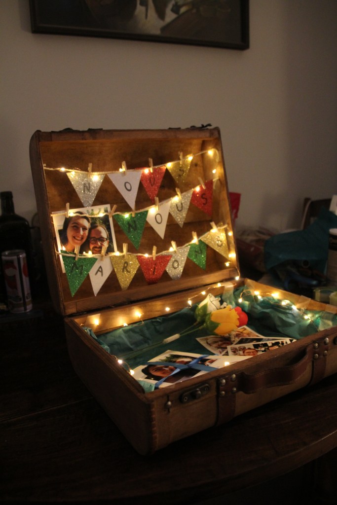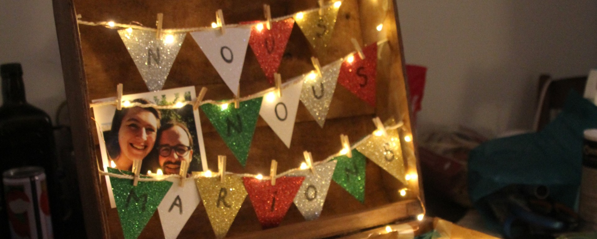 Nous nous sommes donnés un mois et demi pour préparer notre annonce de mariage, que nous avions décidé de faire à l’occasion de Noël 2020. Le Covid traînait toujours par là, nous avions donc essayé de préparer une annonce « Covid-friendly » mais à notre image !